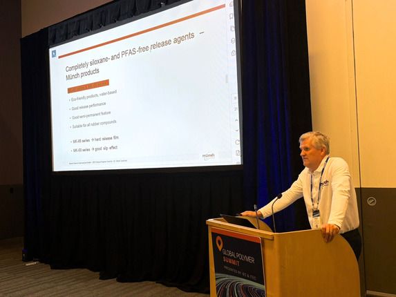 Besonderes Interesse weckte der Fachvortrag von Dr. Ulrich Sülzner, International Sales Manager bei Münch Chemie: „PFAS-freie Trennmittel: Alternativen, effizienter Einsatz, Chancen und Grenzen“. Dieses Thema führte zu einem spannenden Austausch über die Zukunft der Gummiverarbeitung.